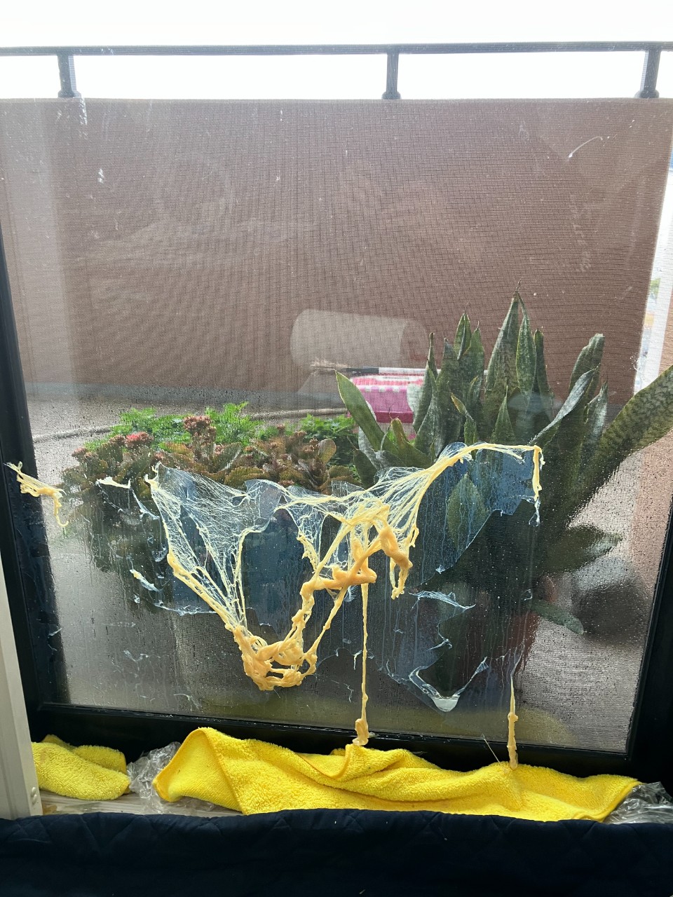 台風や地震で窓ガラスが割れると、破片が飛んだり・落ちたものを踏んでケガをする、二次災害が起こります。
