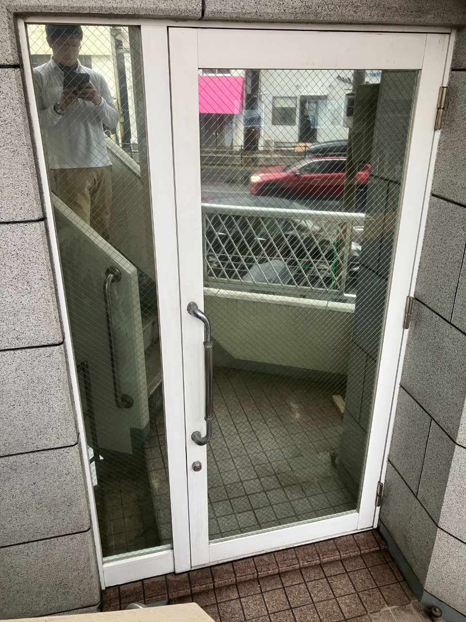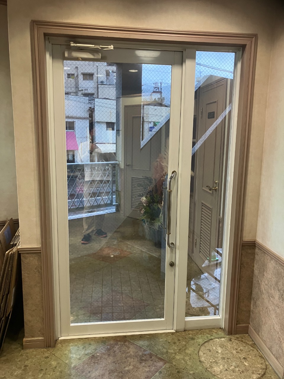 出入り口から室内が丸見えでとても気になるとのことで、ミラーフィルムを選んでいただきました。