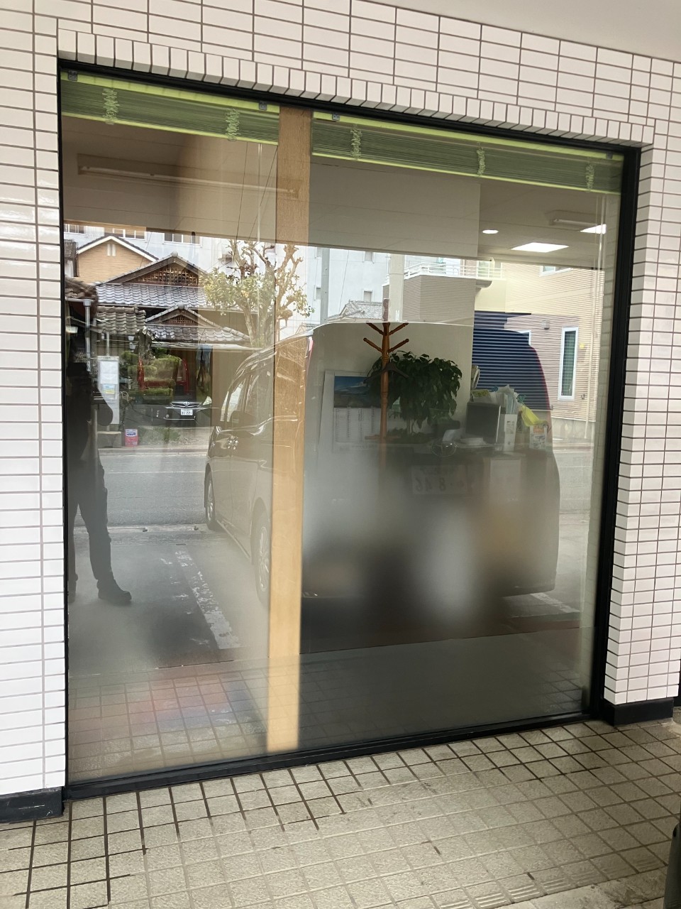 理容室の店舗にすりガラス調の目隠しフィルムを貼らせていただきました。