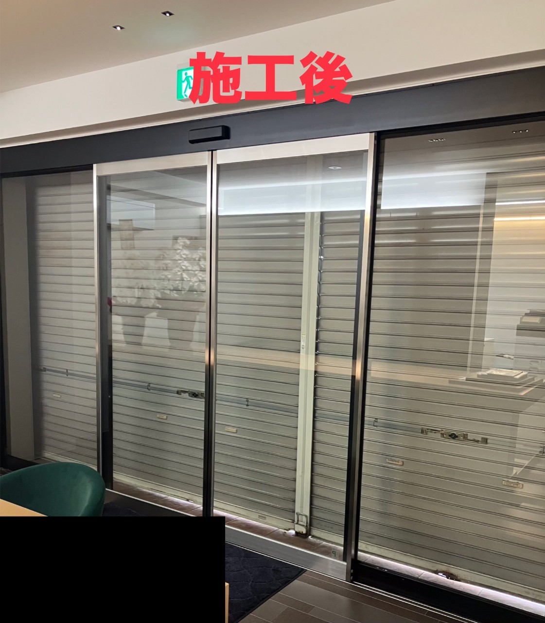 施主様のご希望は、シャッターを降ろさないので、ガラスだけだと不安とのことにより、防犯フィルムを選んでいただきました。