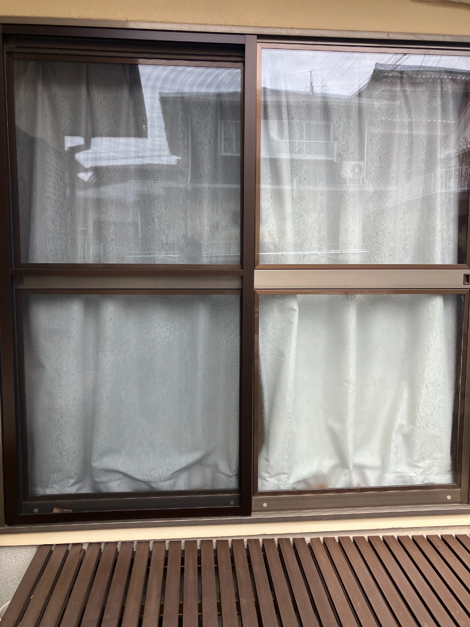 - 某後援会の事務所にミラーフィルムを貼らせていただきました♪<div><br></div><div>出入り口から室内が丸見えでとても気になるとのことで、ミラーフィルムを選んでいただきました。</div><div><br></div><div>網入りガラスでしたが、熱割れする恐れがあるガラスですが、対応可能なフィルムを調べご提案させていただきました。</div><div><br></div><div>網入りはガラスは貼れないという認識が多いですが、貼ることができるフィルムもありますのでお任せ下さい。</div><div>しかし、熱割れは自然現象なので、絶対に割れないという保証はありません。また、網入りがガラスではなくても割れる</div><div>ケースもありますので、施主様のご承諾を得て貼らせていただいております。</div><div><br></div><div>施工後は、屋外から室内が見えないようになり、大変喜んでいただけました。</div>